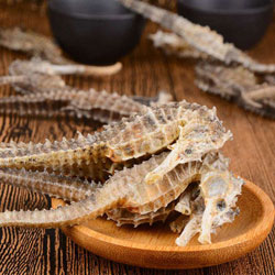 海馬:味甘、咸,性温。能补肾壮阳,活血散瘀。用于肾虚阳痿、精少,腰膝酸软,尿频;肾气虚,喘息短气;跌打损伤,血瘀作痛。